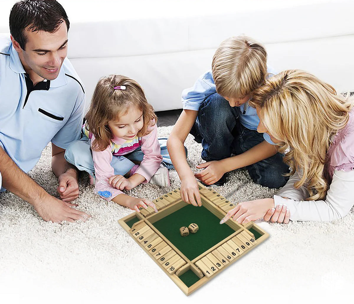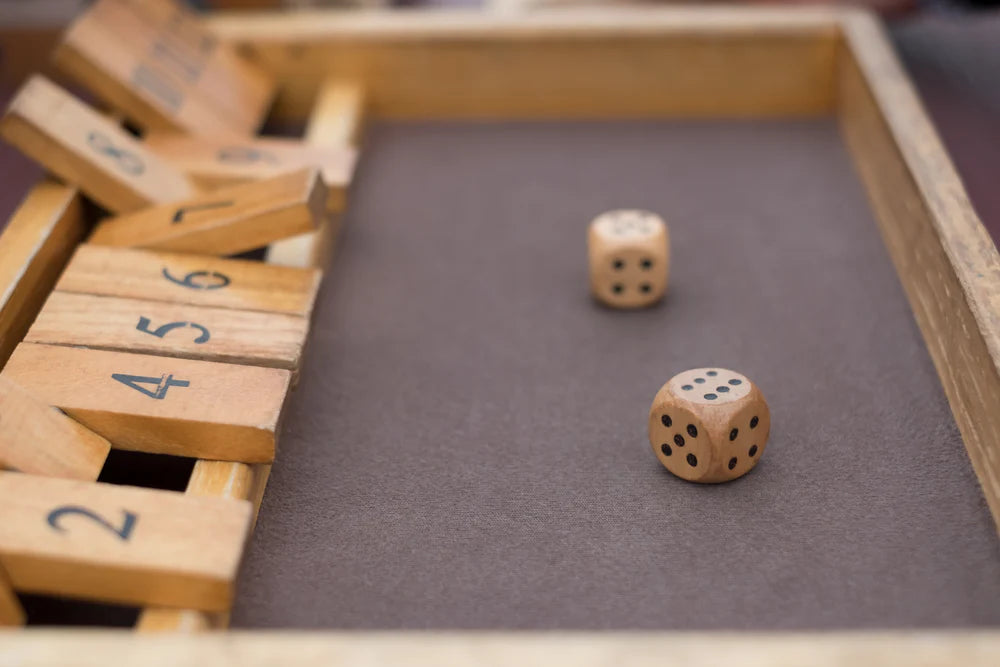 Shut the Box is een compact spel dat je overal kunt spelen, of dat nu thuis is of onderweg. Het spel is klein genoeg om op schoot te houden, dus het kan gemakkelijk gespeeld worden in de auto, op de bank of tijdens vakanties.